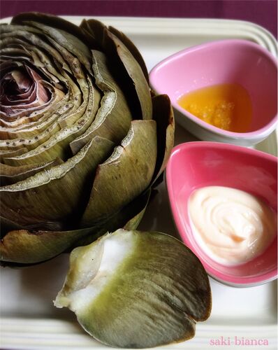 アーティチョークを初めて丸のまま食べたのは、7年前に次女を産んだ時期に行った、 近所のレストランでした。メニューにアーティチョークの名前が出てきたのは、 分かっていたのですが、まさか一人一つずつ丸のまま出てくるとは思わず、 かなり衝撃的でした…