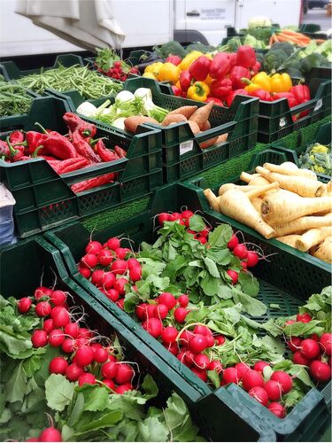 水曜日と土曜日には町の中の大きな駐車場が、マルクト(朝市)に変わリます。 でも、土曜日は補習校の為、行けるとしたらチャンスは水曜日だけ…なのに、最近は度々いく機会を逃し、朝市の存在すら忘れかけていたのですが キールに来てまだ日が浅い、可愛らし…